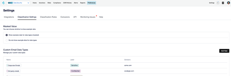 In order to distinguish between types (or groups) of email addresses, Prisma Cloud DSPM provides the option to mark different email addresses as different Data Types, according to the domain of the email address.